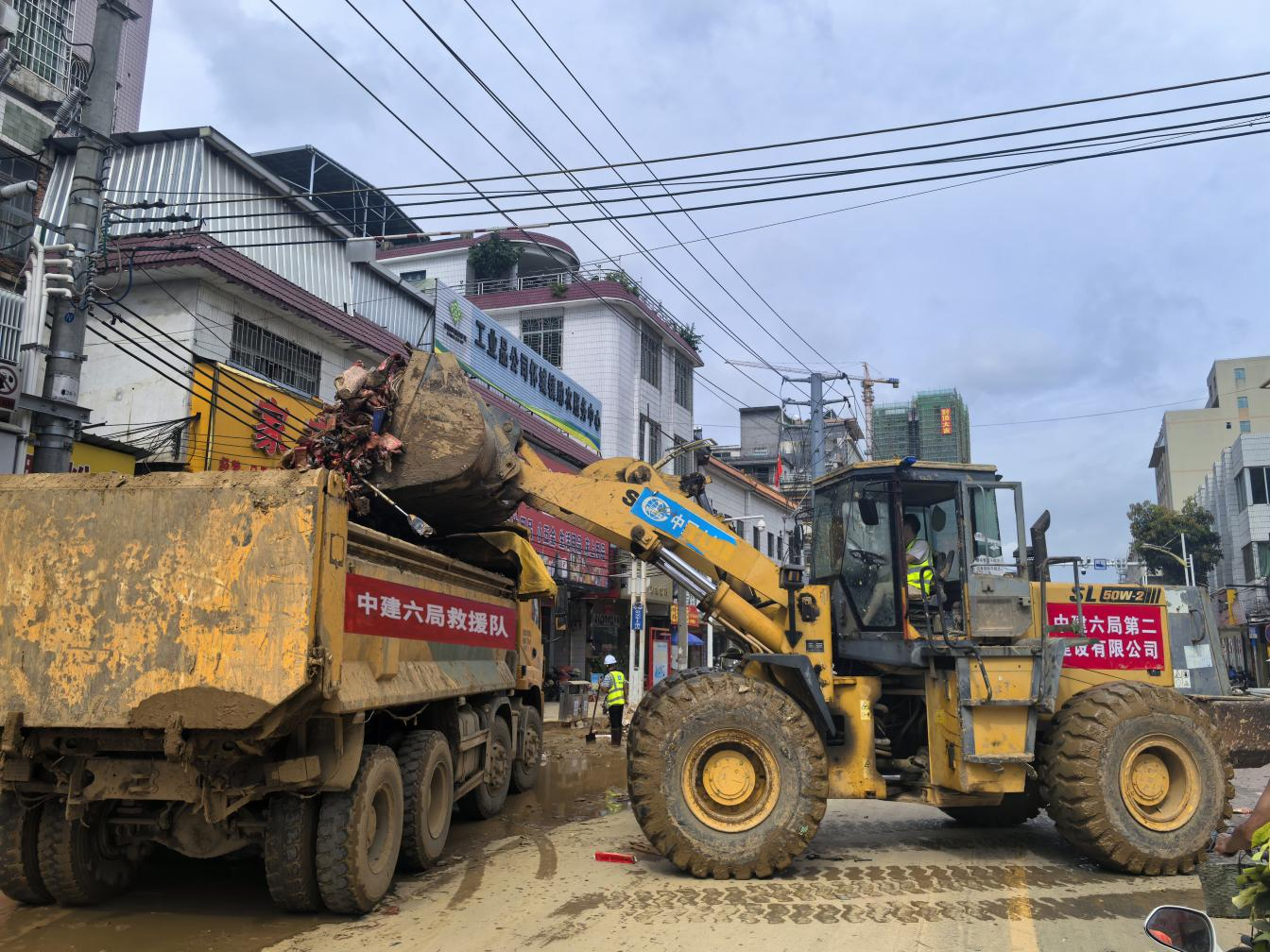 危急时刻,项目迅速出击驰援。一支由10名管理人员和40余名工人组成的突击队集结完毕,2台推土机、2台挖掘机、2辆渣土车以及大量抢险工具准备就绪。